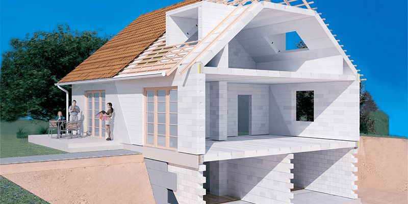 Por último, ya estamos preparados para levantar nuestra vivienda utilizando el sistema de hormigón celular, que será el material que utilizaremos para toda la estructura de nuestra vivienda incluyendo umbrales de ventanas, pilares, forjados y cubiertas, que nos ayudarán a conseguir una vivienda homogénea, totalmente aislante, ignífuga, etc.
